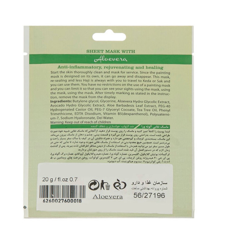 دیدن محصولات مرتبطماسک صورت نقابی آلوئه ورا دارای خواص ضد التهاب و سوزش, شفاف کنندگی و جوان سازی می باشد. همچنین استفاده این ماسک باعث انتقال آنزیم, مواد معدنی, قندی و آمینو اسید به پوست صورت میگردد.
