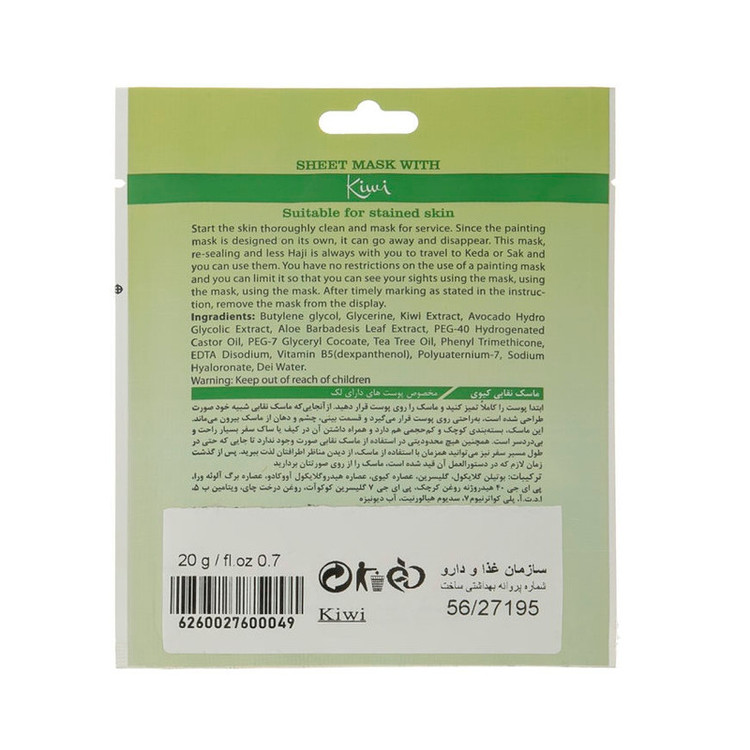ماسک صورت های کالر مدل کیوی وزن 20 گرم بسته 6 عددی